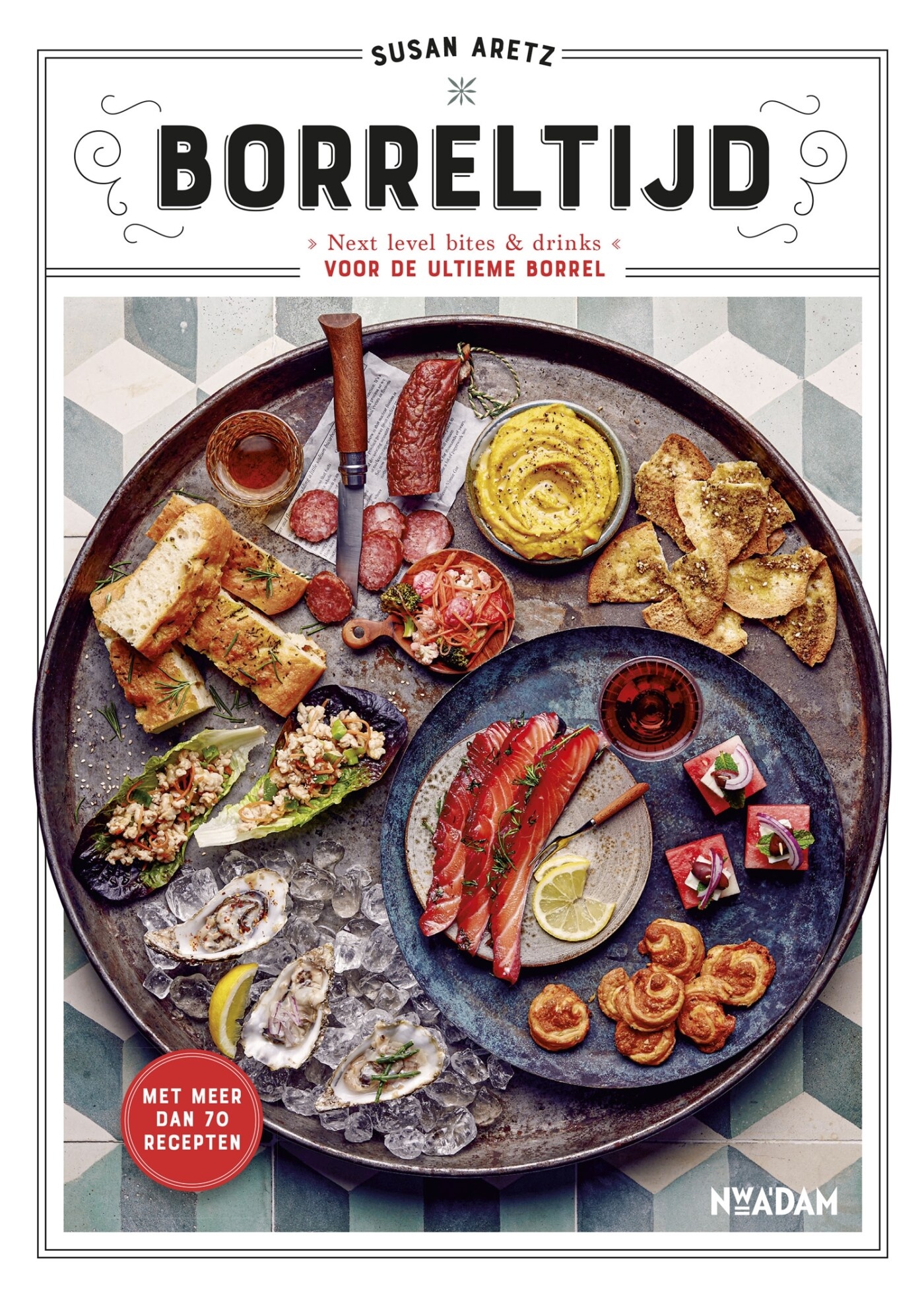 Zit de vijf al in de klok? Borrelen is een manier om hoogtepunten te vieren, verdriet te verdrinken of gewoon gezellig tijd met elkaar door te brengen. Voor wie genoeg heeft van het ouderwetse blokje kaas of plakje worst bij de borrel bedacht Susan Aretz 70 next level borrelhapjes, waarmee je verrassende, culinaire borrelplanken met thema's als Nordic of High wine kunt samenstellen. Er zijn inspirerende vlees-, vis- en vega(n) gerechtjes, zoals Poke bowl cups, Watermeloenbites en Mini-köfte, en suggesties voor bier, wijn en cocktails met bijzondere Nederlandse spirits. En na een goed gevulde borrelplank hoef je voor het avondeten de keuken niet meer in. Kortom: vanaf nu is het áltijd borreltijd!